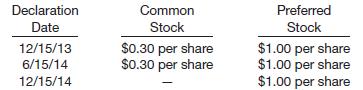 Hatch Company has two classes of capital stock outstanding: 8%, $20 par preferred and $5 par common. At December 31, 2014, the following accounts were included in stockholders’ equity.Preferred Stock, 150,000 shares