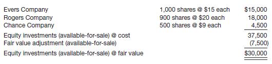 Fernandez Corp. invested its excess cash in available-for-sale securities during 2014. As of December 31, 2014, the portfolio of available for-sale securities consisted of the following common stocks.