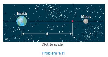 Calculate the distance d from the center of the earth at which a particle experiences equal attractions from the earth and from the moon. The particle is restricted to the line through the centers of the earth and the moon. Justify the two solutions physically. Refer to Table D/2 of Appendix D as