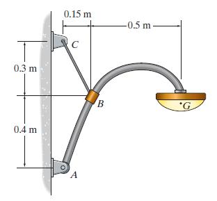 The 10-kg lamp has a center of mass at G. Determine the horizontal and vertical components of reaction at A, and the force in the cable BC. 0.3 m 0.4 m 0.15 m A B -0.5 m- *G
