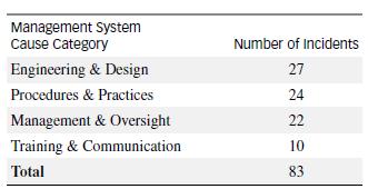 Refer to the Process Safety Progress (Dec., 2004) study of industrial accidents caused by management system failures, Exercise 3.78 (p. 127). The table listing the four root causes of system failures (and associated proportions) is reproduced below. Suppose three industrial accidents are randomly