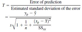 Show thathas a Student’s T distribution with v = (n - 2) df . Then use the T statistic as a pivotal statistic to derive a (1 - α)100% prediction interval for yp. Error of prediction T Estimated standard deviation of the error (xp - 1) 1 + S,