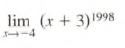 In Exercises determine the limit by substitution. Support graphically. lim (x + 3)1998 4-4