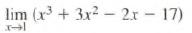 In Exercises determine the limit by substitution. Support graphically. lim (x³ + 3x²2r-17)