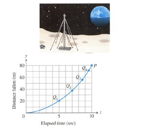 In Exercises a distance-time graph is shown.(a) Estimate the slopes of the secants PQ1, PQ2, PQ3, and PQ4, arranging them in order in a table. What is the appropriate unit for these slopes?(b) Estimate the speed at point P.The accompanying figure shows a distance-time graph for a wrench that