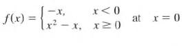In Exercises determine whether the curve has a tangent at the indicated point. If it does, give its slope. If not, explain why not. f(x) -X, x < 0 lx²-x, x ≥ 0 = {₁²₁² at x = 0