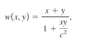 In 1931, Albert Einstein developed the following formula for the sum of two velocities, x and y:where x and y are in miles per second and c represents the speed of light, 186,282 miles per second.(a) Suppose that, relative to a stationary observer, a new super space shuttle is capable of traveling