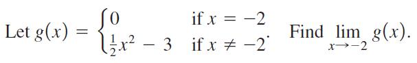 In Exercises, use the properties of limits to help decide whether each limit exists. If a limit exists, find its value. Let g(x) = So 1/1/x² – 3 - if x = -2 -2 3 if x Find lim g(x). x--2