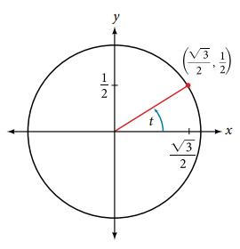 For the following exercises, use the given point on the unit circle to find the value of the sine and cosine of t. (-V3 2 V 3 2 t 1 4 2