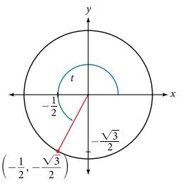 For the following exercises, use the angle in the unit circle to find the value of the each of the six trigonometric functions. (-4-4- V3 2 t X