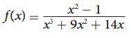 For the following exercises, find the domain, vertical asymptotes, and horizontal asymptotes of the functions. f(x) = x² - 1 x³ + 9x² + 14x