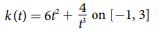 For the following exercises, find the average rate of change of each function on the interval specified. k(t) = 6f² + on [-1,3]