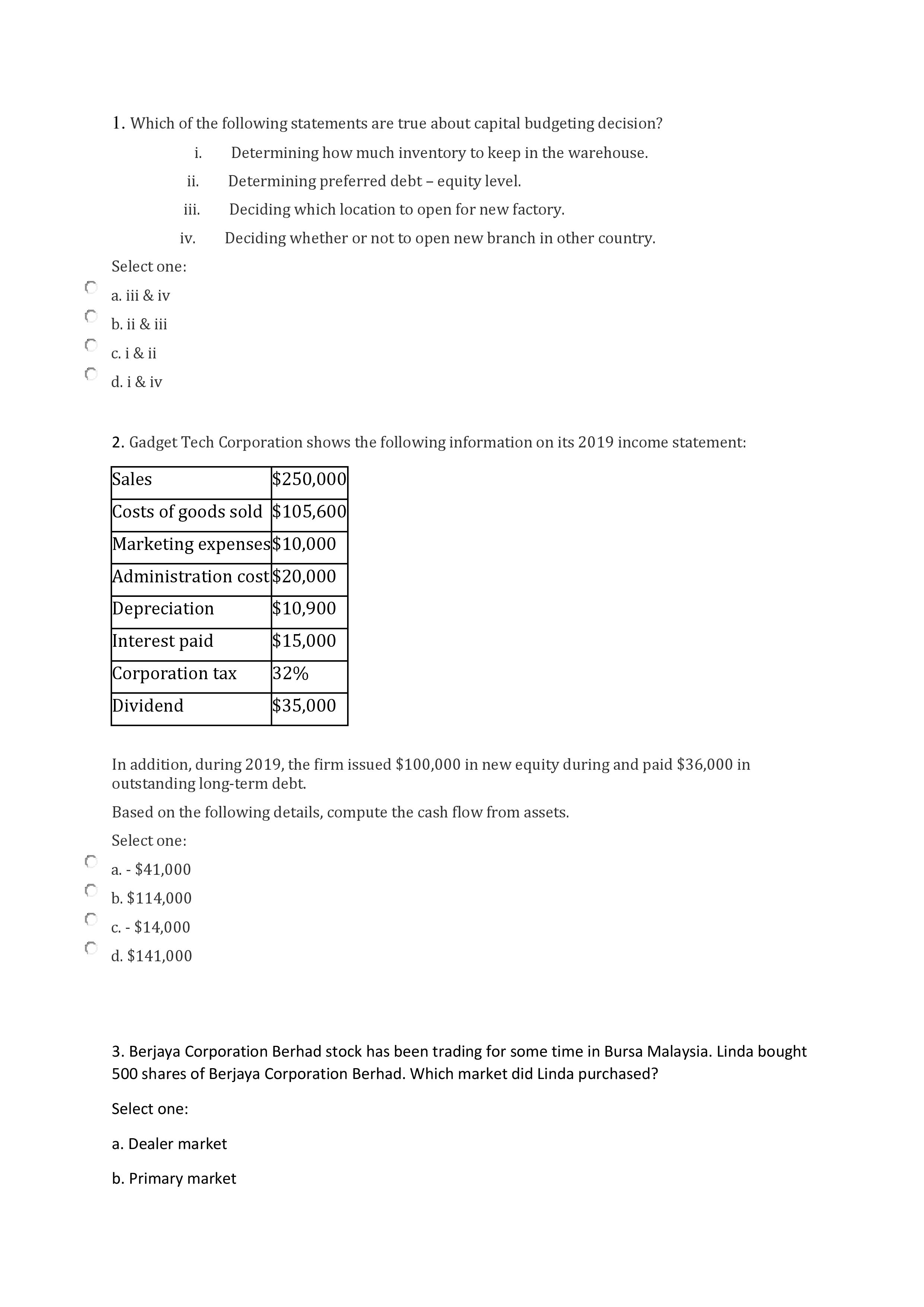 Finance Questions and Answers November 10, 2024
