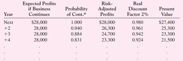 Gultekin is of the opinion that he could earn at least $3,000 in current dollars per month as a hired manager. Gultekin feels he should subtract this amount from profits when analyzing the venture. Furthermore, he is aware of statistics showing that for restaurants of this size, approximately 6 percent of owners go out of business each year.