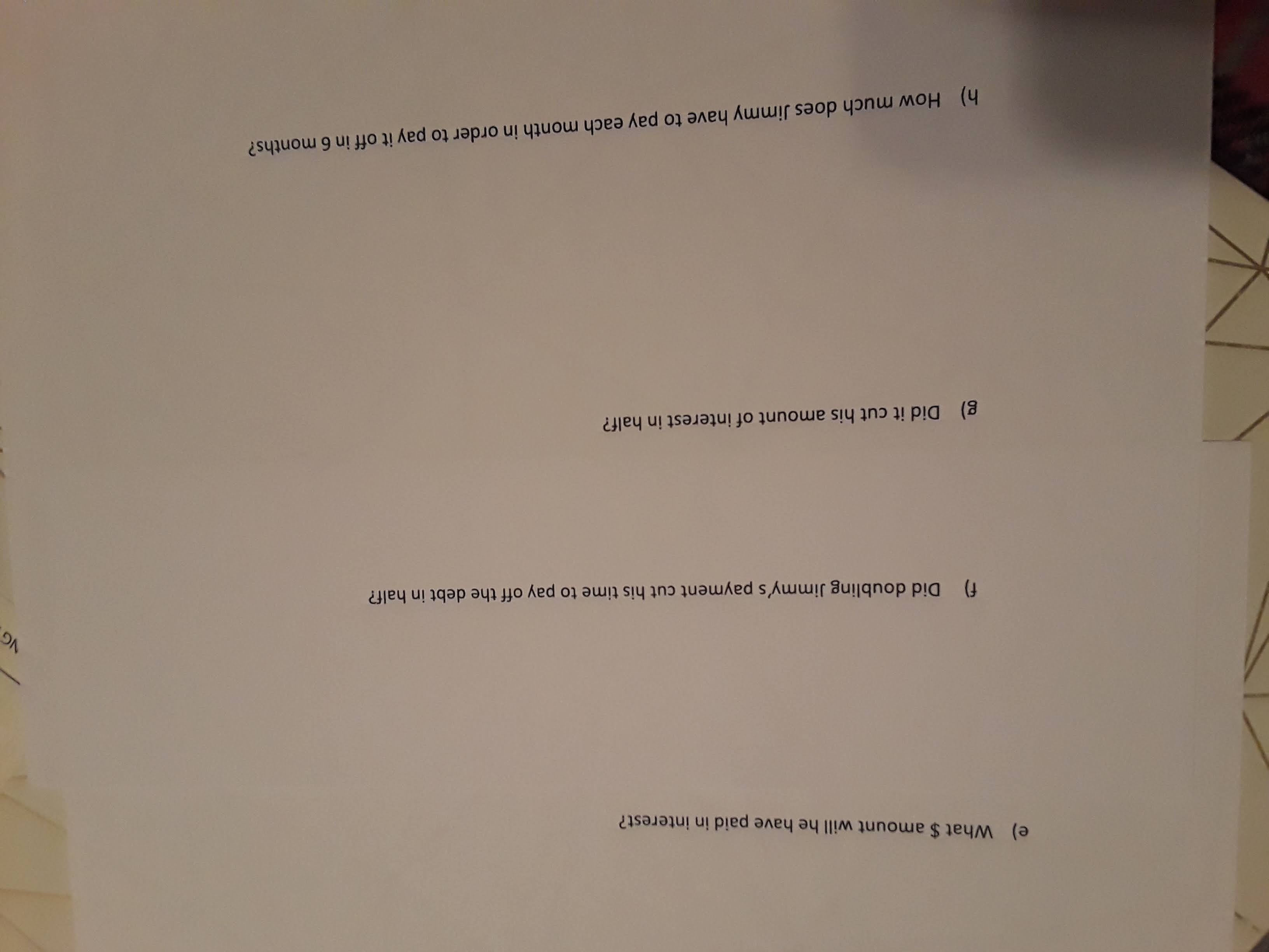Please answer e,f,g, and h, using the information above. Thank you!
