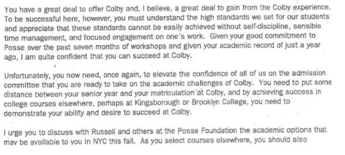 A student from Posse Foundation applied for a chance to be admitted to Colby College The final trans... View full answer