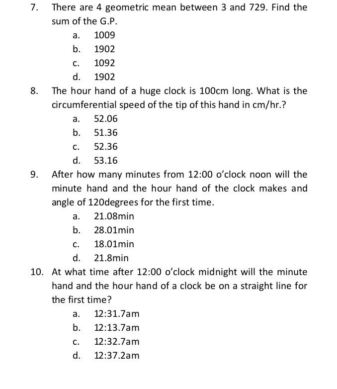 Mathematics Questions and Answers November 12, 2020
