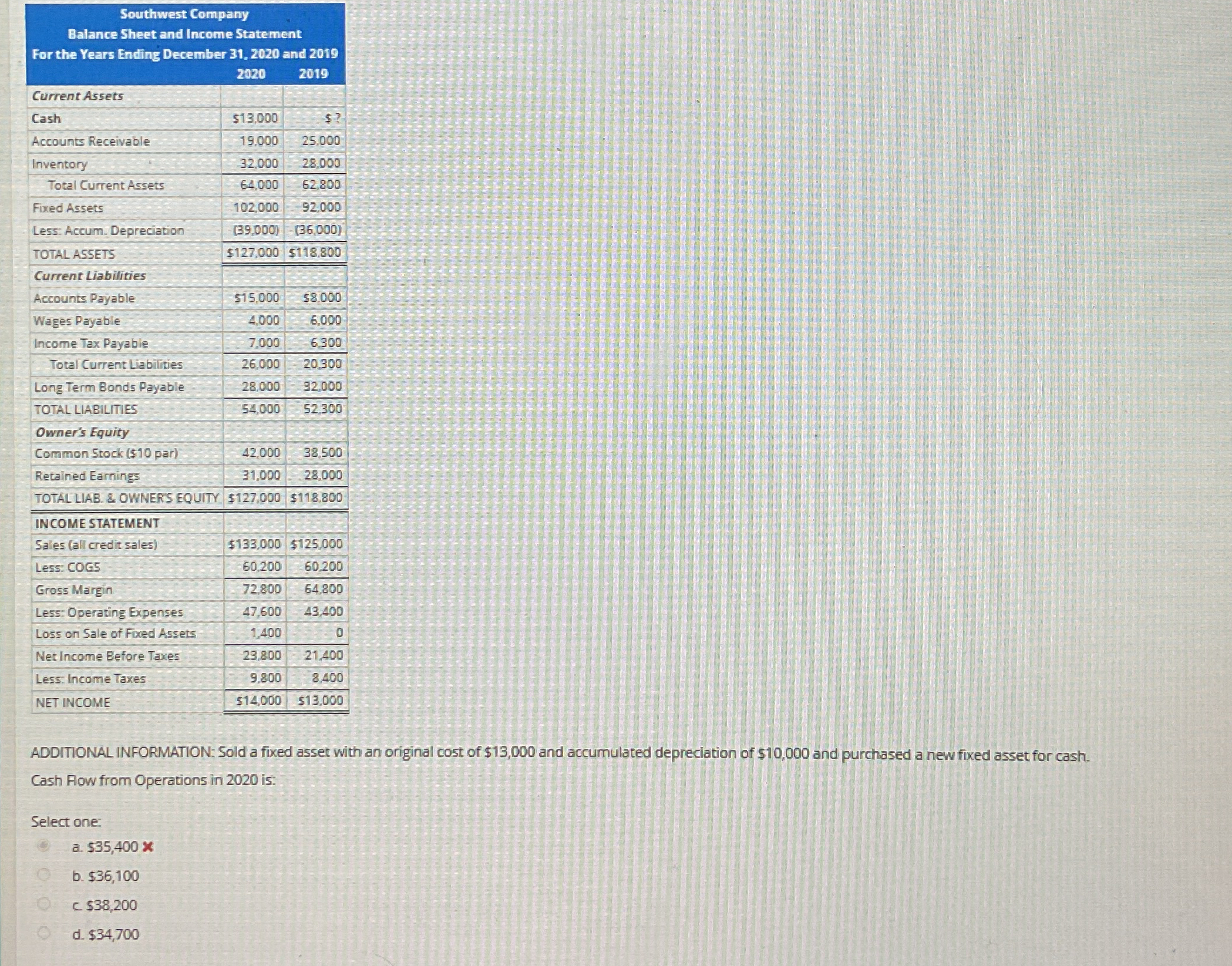 ![\table[[\table[[Southwest Comp],[Balance Sheet and Incom],[he Years Ending Decembel]],\table[[pany],[ne Stateme],[31,2020]],\table[[ent],[and 2019]]],[,2020,2019],[Current Assets,,],[Cash,$13,000,$?](https://s3.amazonaws.com/si.experts.images/answers/2024/06/6662e33c3aaf8_7316662e33b53e74.jpg)