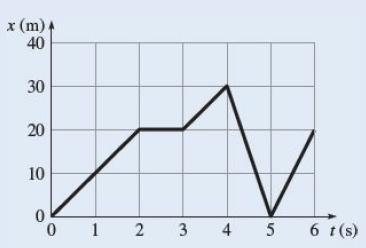 How far does the object move from t = 0 to t = 3 s?A bicycle is moving along a straight line. The graph shows its position from the starting point as a function of time. Consider the 1 s time intervals 0–1 s, 1–2 s, and so on. x (m). 40 30 20 10 1 2 3 4 5 6 t(s)
