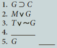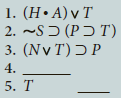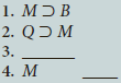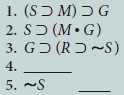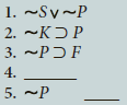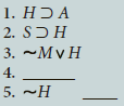 Question: The following symbolized arguments are missing a premise. Write the premise needed to derive the conclusion (last line), and supply the justification for the conclusion.